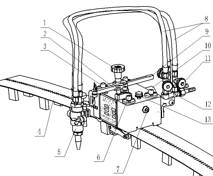 1.橫移手輪:通過調(diào)節(jié)該手輪,調(diào)節(jié)割炬橫向水平移動的距離。