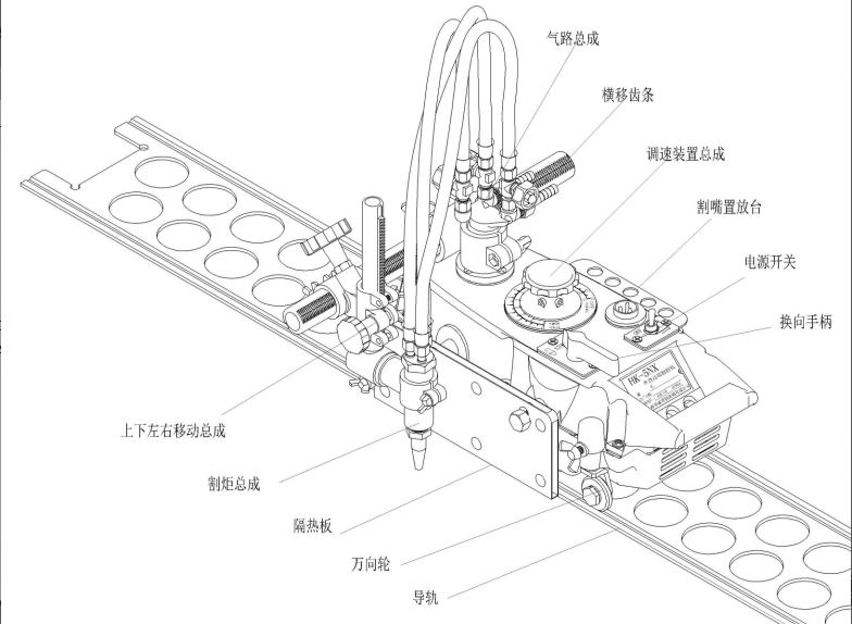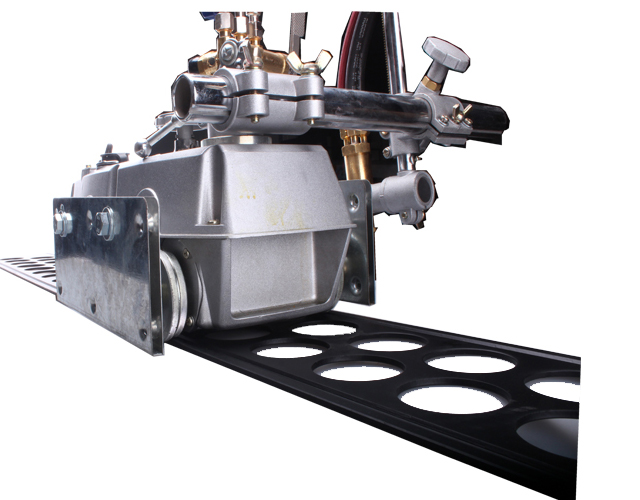 HK-5NX 切割機采用高強度鋁合錠材料,精密壓鑄制作,結(jié)構(gòu)設(shè)計合理,行走穩(wěn)定性好。本裝置調(diào)速系統(tǒng)采用機械式降噪保護無級變速系統(tǒng)調(diào)速,易于操作與維護。本裝置采用機械換向系統(tǒng)取代電子開關(guān),電機單方向運轉(zhuǎn),不需要頻繁正反轉(zhuǎn),延長電機使用壽命。本裝置割炬一側(cè)裝有雙層隔熱板,有效防止機身升溫,減少了切割時高溫和潮濕環(huán)境的影響。本機采用交流電機,自帶冷卻風(fēng)扇,無須更換碳刷。根據(jù)用戶需要可同時安裝兩把割炬,進行坡口切割;用戶也可選購圓盤導(dǎo)軌和半徑桿進行圓形零部件切割。本裝置適用于造船、石油化工、橋梁建設(shè)及金屬鋼結(jié)構(gòu)等工廠。