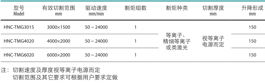 TMG系列是一種高速,精密的等離子或類激光數控切割機。使用一體式模塊化結構,使安裝迅速,方便??梢约优涑闊煿ぷ髋_,以達到環(huán)保要求。本機特別適用于中厚,薄有色金屬板材,不銹鋼,鋁,碳鋼板材的高速切割。
